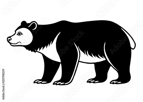 vector illustration of a spectacled, mountain, or andean bear in side view, showcasing its unique markings. perfect for wildlife designs, south american fauna themes, or educational projects