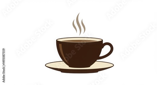 Vector illustration of a steaming coffee cup on a saucer minimalist and crisp style white background commercial use