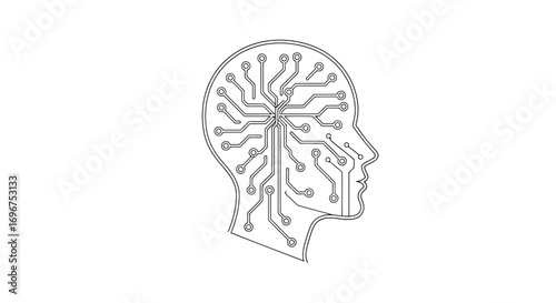 artificial, intelligence, head, brain, circuit, board, technology, computer, science, machine, learning, ai, robot, human, mind, thinking, innovation, future, digital, network, connection, symbol, signs, graphic, element, design, outline, line, art, drawing