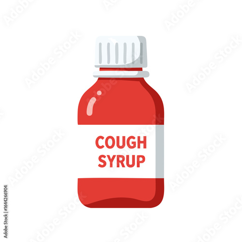 Vector illustration of cough syrup bottle on white background, medical remedy