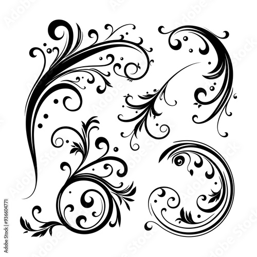 Vector illustration of decorative swirls, Ornate swirling floral motif vector. a set of vector elements isolated on a white background.