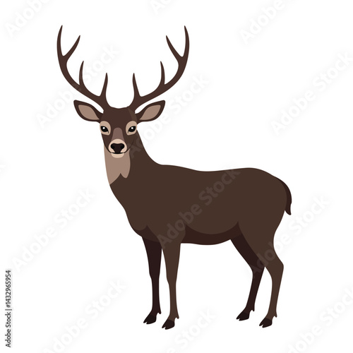 Vector illustration of deer in cartoon flat style. Male or female deer wild life animal isolated in white background. Cute different poses deer with long horns for logo, icon, infographic, symbol