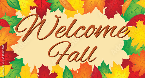 vector illustration of fall autumn leaves with the welcome fall typography, fall background banner, social media banner