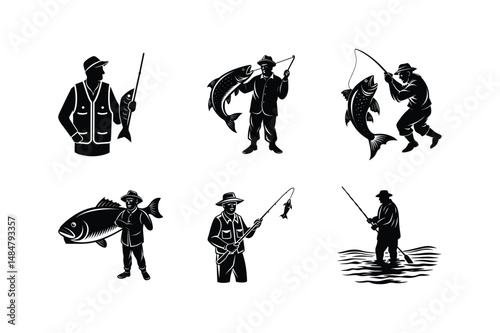 silhouette, sport, vector, illustration, people, man, silhouette, black, icon, art, fishing, fisherman, fish, bundle, nature, water, river, ocean, boat, sea, catch, rod, lake, net, bait, landscape, hook, reel, adventure, travel, wildlife, hobby, drawing, equipment, male, scenic, summer, lakefront, activity, sunrise, leisure