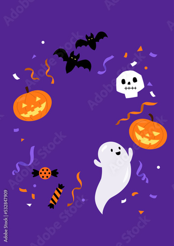 card, invitation, skull, confetti, bone, ghost, dark, orange, bat, black, night, party, pumpkin, animal, happy, autumn, decoration, fear, skittish, scarey, holiday, october, horror, background, illustration, vector, event, poster, fun, halloween, day, cute, cartoon, celebration