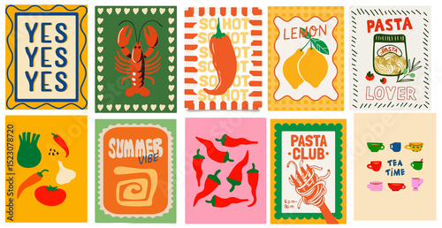 Vector illustration of Italian pasta featuring a modern, fun, and stylish food art design. Perfect for food-related branding, menu design, kitchen & cafe wall decor, posters or kitchen decor.