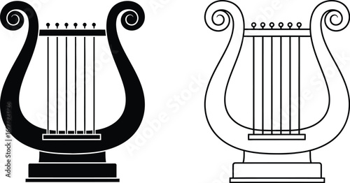 lira, musical, instrument, vector, illustration, art, music, string, harp, classical, ancient, greek, sound, melody, design, drawing, symbol, icon, black, white, outline, shape, graphic, isolated, culture, vintage, elegant