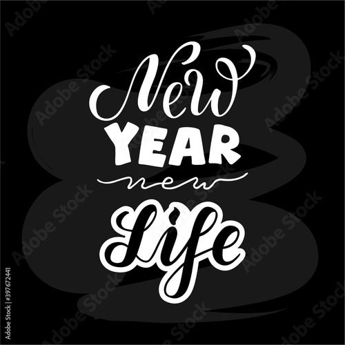 Vector illustration of new year new life lettering for banner, postcard, poster, clothes, advertisement, package design or decoration. Handwritten text used for template, signage, billboard, print