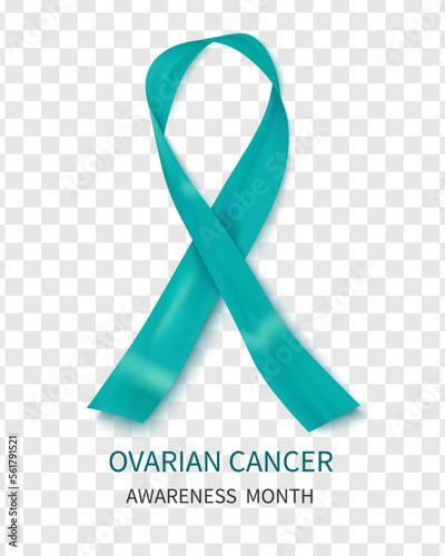 Vector illustration of ovarian cancer awareness tapes isolated on a transparent background. Realistic vector teal silk ribbon with loop.Turquoise ribbon for banners, posters.