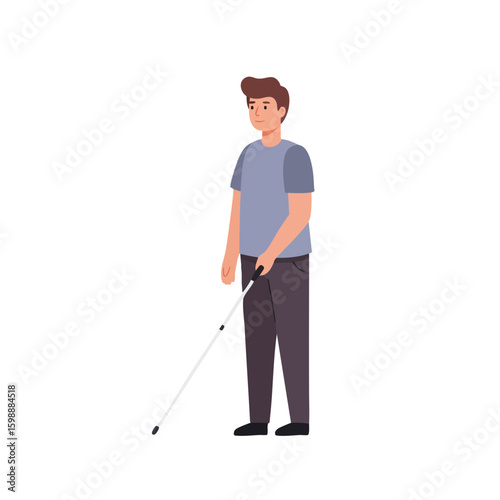 Vector illustration of person with white cane symbol on white background, accessibility icon