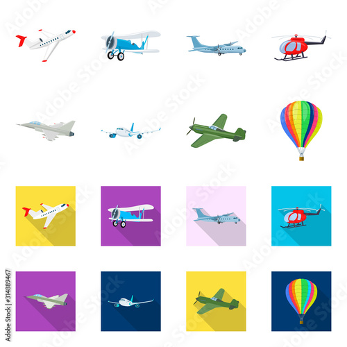 Vector illustration of plane and transport sign. Set of plane and sky stock vector illustration.