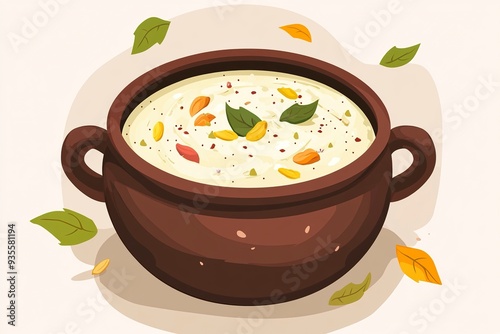 Vector Illustration of pot with kheer [ sweet dish ] which is a harvest festival celebrated on the full moon day ,generative ai