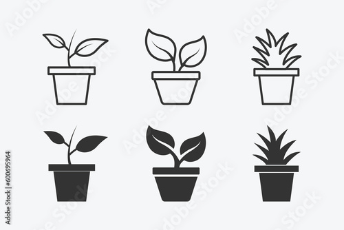 vector illustration of pot with plant isolated icon set. linear and filled style flat decoration sign for mobile concept and web design