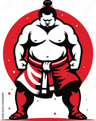 sumo, wrestler, japanese, japan, culture, martial art, sport, logotype, icon, emblem, design, graphic, illustration, stylised, strong, power, strength, traditional, asian, red, white, black, fighter, athlete, vector
