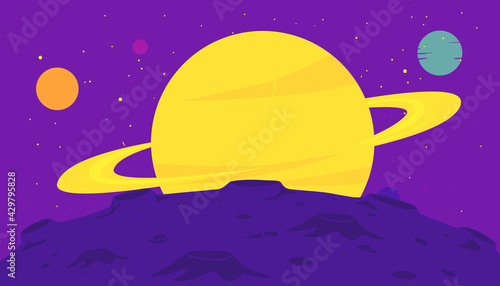 space, planet, astronomy, saturn, planet, star, universe, background, cartoon, earth, galaxy, vector, illustration, design, poster, fantasy, colourful, system, satellite, round, ring, element, landscape, cosmic, concept, futuristic, graphic, surface, cosmos, atmosphere, abstract, science, decoration, star, stellar, dark, wallpaper, template, create