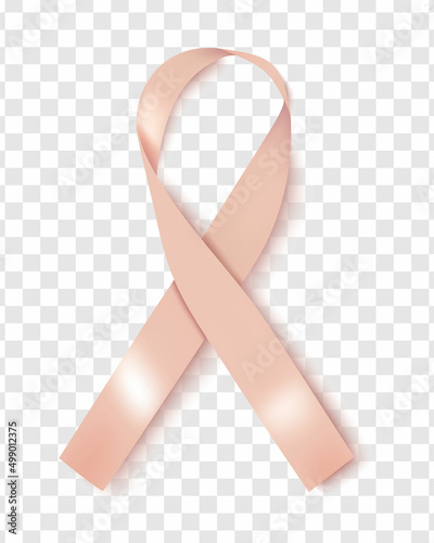 Vector illustration of the uterine cancer awareness ribbon, on a transparent background. Realistic vector peach silk ribbon with loop.Design for the banner
