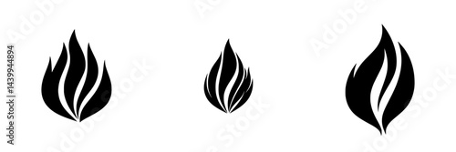 Vector illustration of three black and white flame icons designed for graphic use in various projects