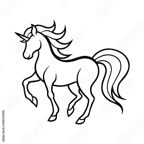 unicorn, vector, line, art, outline, mythical, creature, fantasy, magic, horse, horn, elegant, graphic, vignetting, minimal, simple, animal, dream, fairy, symbol, profile, design, icon, majestic, drawing, beast, head, legend, clean, illustration, cartoon, children, donkey, doodle, mythology, fairy tale, character, happy, animal head