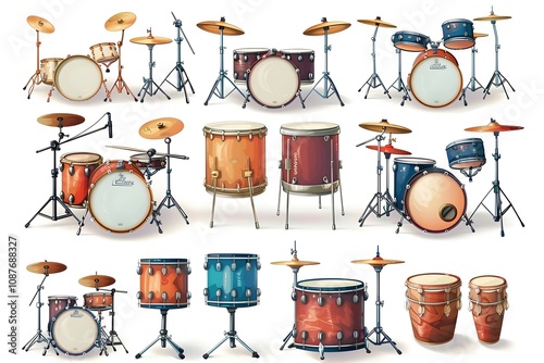 Vector illustration set of 50 musical instruments in cartoon style isolated on white background Retro musical instruments set realistic design Music instruments, musical notes and equipment A variety