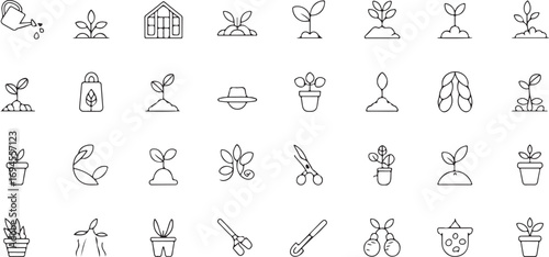 vector illustration Thin Line Gardening Icons – 40 Agriculture and Farming Pictograms