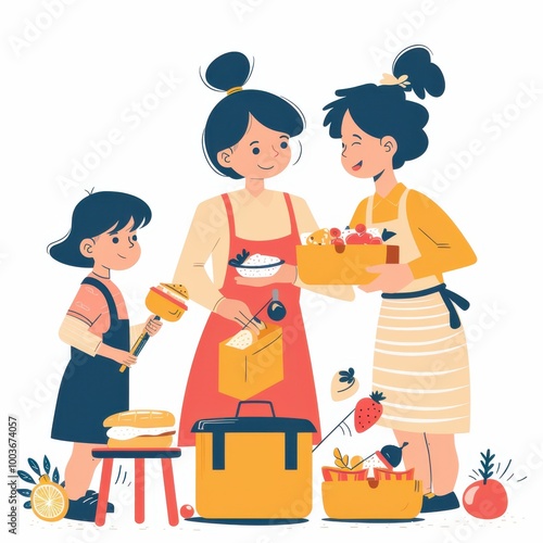 cartoon, vector, family, illustration, woman, people, children, preparing, lunch, food, children, mother, boy, children, table, clip art, love, couple, eating, cafes, art, girl, food, school, fun, baby, drawing, hot drink