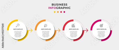 Vector Infographic circle label design business template with icons and 4 options or steps. Can be used for process diagram, presentations, workflow layout, banner, flow chart, info graph