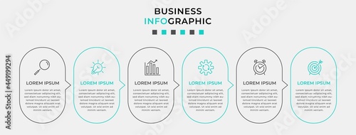Vector Infographic design business template with icons and 6 options or steps. Can be used for process diagram, presentations, workflow layout, banner, flow chart, info graph