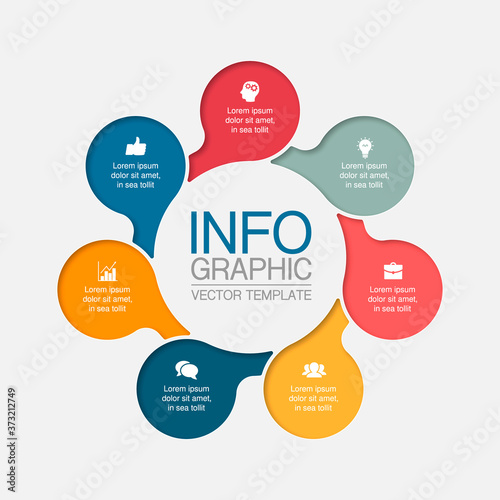Vector infographic template, circle with 7 steps or options. Data presentation, business concept design for web, brochure, diagram.