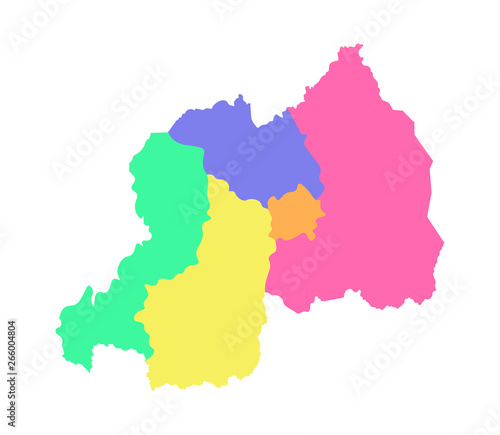 Vector isolated illustration of simplified administrative map of Rwanda. Borders of the regions. Multi colored
