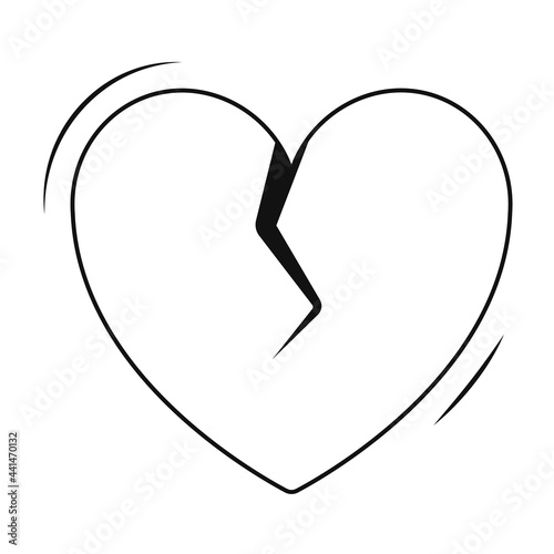 Vector isolated simple flat icon. Heart with a crack in the middle. Design element on the theme of the end of love, a broken heart, quarrel or separation.