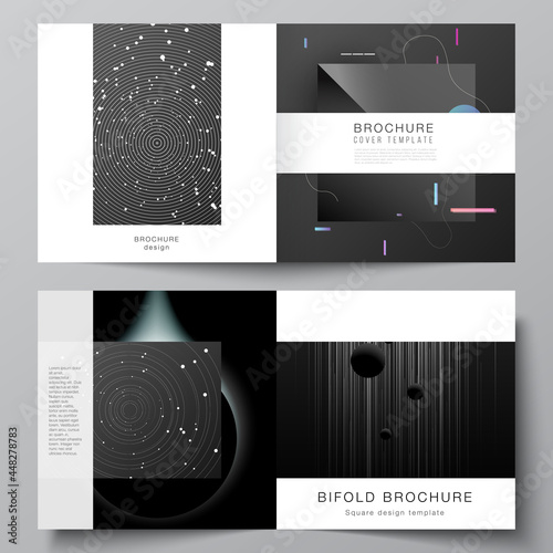 Vector layout of two covers templates for square design bifold brochure, flyer, magazine, cover design, book design, brochure cover. Tech science future background, space astronomy concept.