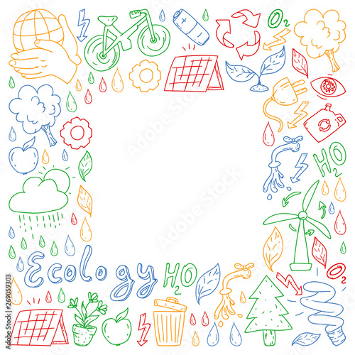 Vector logo, design and badge in trendy drawing style - zero waste concept, recycle and reuse, reduce - ecological lifestyle and sustainable developments icons.