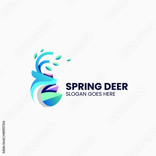 Vector Logo Illustration Deer Water Gradient Colorful Style