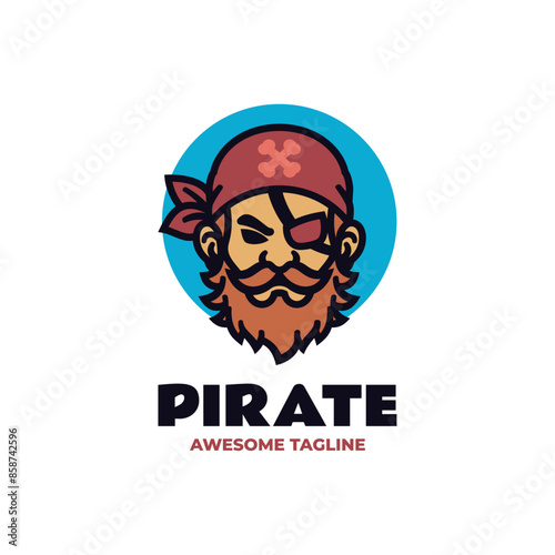 Vector Logo Illustration Pirate Mascot Cartoon Style.