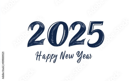 Vector logo of the numbers "2025" in navy blue, on a white background, written with very thin and clean letters. Below the numbers is text that reads "Happy New Year"