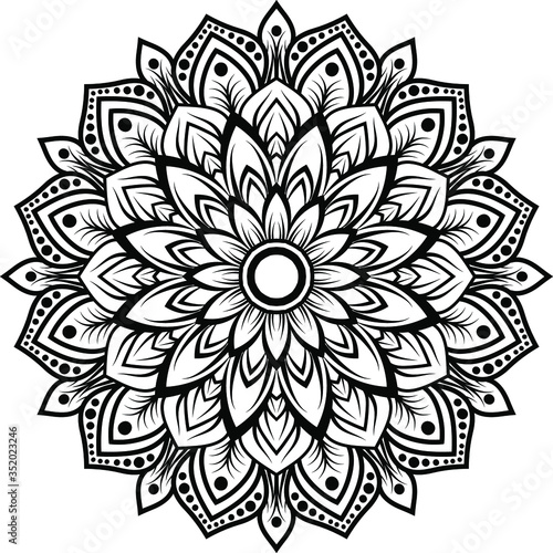 Vector mandala art or circular pattern for decoration elements, meditation poster, stress relief, henna, adult coloring book page, decoration card.