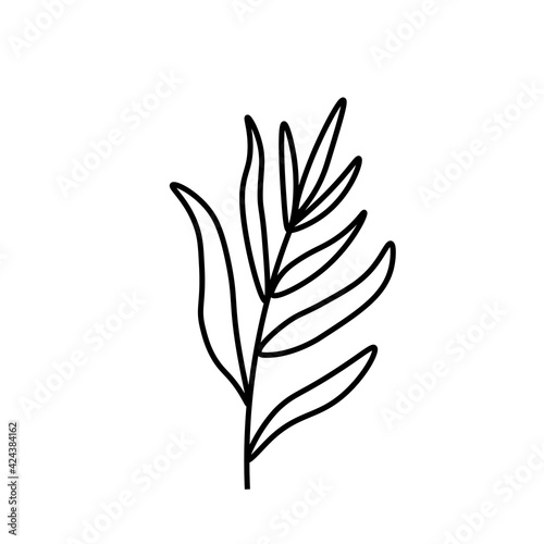 Vector minimalist plant leaf with a black line.One autumn simple hand drawn illustration on white isolated background in doodle style.Design for packaging,social media,posters,postcards.
