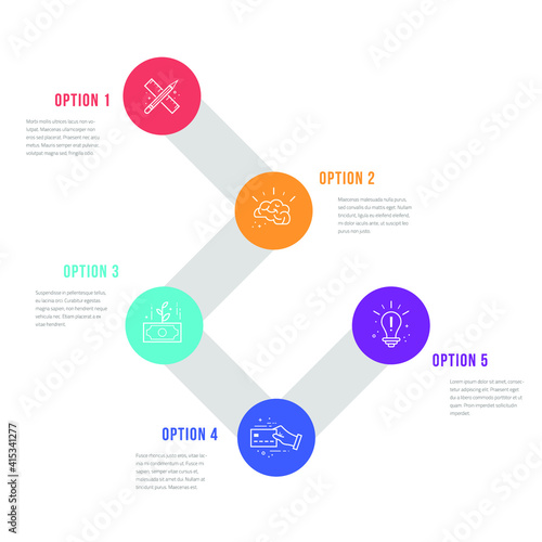 Vector modern infographic data design template. Vector illustration with 5 steps and icons. Can be used for workflow layout, diagram, annual report, web design.