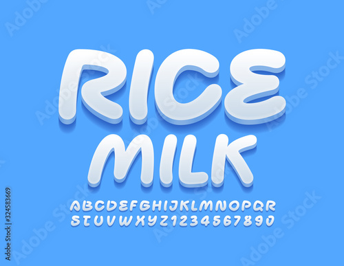 Vector modern logo Rice Milk with white Alphabet Letters and Numbers. Trendy handwritten 3D Font.