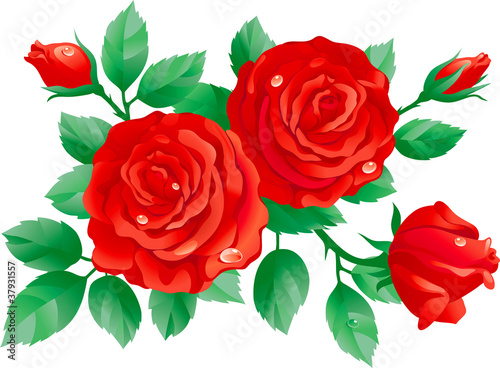 bouquet, rose, flower, green, red, realistic, plant, floral, vector, illustration, clip art, abstract, design, colours, digital, leaf, nobody, dew, dripped, nature, tree branch, blossom, closeup, beautiful, element, group, bud, isolated