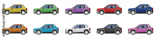 Vector or Illustrator of mini cars colorful collection. Design of electric vehicles car. Colorful cars with separate layers. On isolated white background.