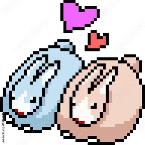 pixel, art, isolated, cartoon, icon, cute, vector, animal, pet, fat, round, rodent, rabbit, rabbit, love, couple, nubes, romance, valentine
