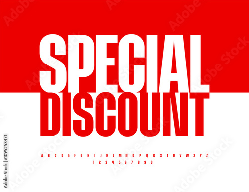 Vector promo concept Special Discount. Minimalistic style Font. Red Alphabet Letters and Numbers.