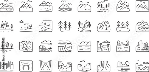 Vector Scenic Pictograms Environment & City Landforms Line Icon Set – 40