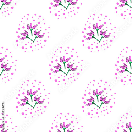 Vector seamless pattern with pink flowers on a white background. Use in fabric, wrapping paper, wallpaper, bags, clothes, dishes, cases on smartphones and tablets.