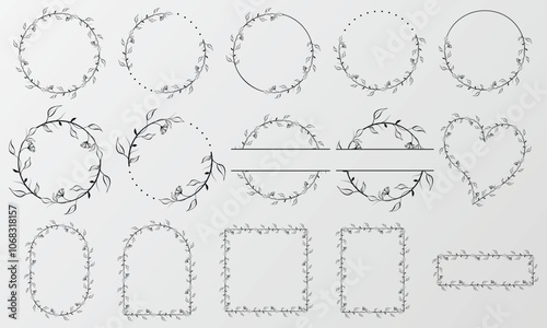 Vector set of floral circle frame, flourish design element for wedding, greeting card