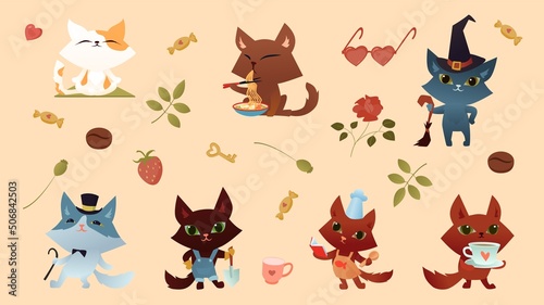 cat, cartoon, funny, yoga, cute, illustration, profession, vector, job, occupation, set, character, animal, uniform, cook, collection, isolated, work, adorable, design, flat, children, professional, icon, children, chef, painter, pet, costume, soldier, symbol, drawing, little, white, sticker, lovely, mascot, happy, people, sweet, smile, comic, sorcerer, hot drink, gardener, noodle, dancing, meditation, cup