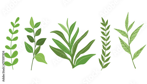 Vector set of leaves isolated on white background. Tropical palm trees branches. Set of leaves. Hand drawn decorative elements. Vector illustration