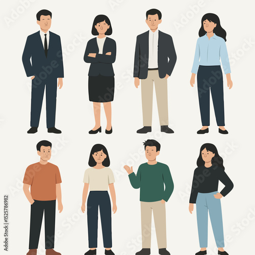 vector, illustration, casual attire, set, isolated, person, business, character, adult, cartoon, wear, standing, male, young, style, people, clothes, fashion, shirt, man, collection, clothing, jean, businessman, guy, hair, design, modern, smile, body, happy, flat, stylish, white, outfit, female, face, full body, human, pose, hipster, group, jacket, element, confident, girl, student, professional, man