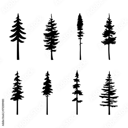 Vector silhouette illustration of a winter forest landscape with pine and fir trees